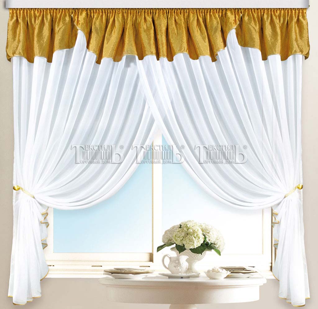 Легкие портьеры из вуали, декоративный ламбрекен из тафты